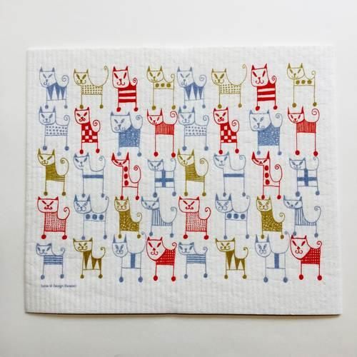 並んだ猫たちの表情も楽しく、ユーモラスでシンプルなデザインが人気です。