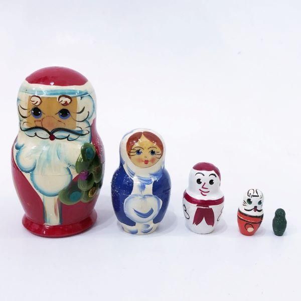 サンタクロース中から、女の子や雪だるまが出てくるマトリョーシカ5個型です。