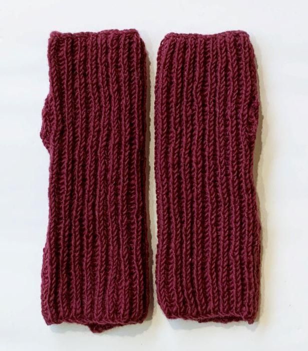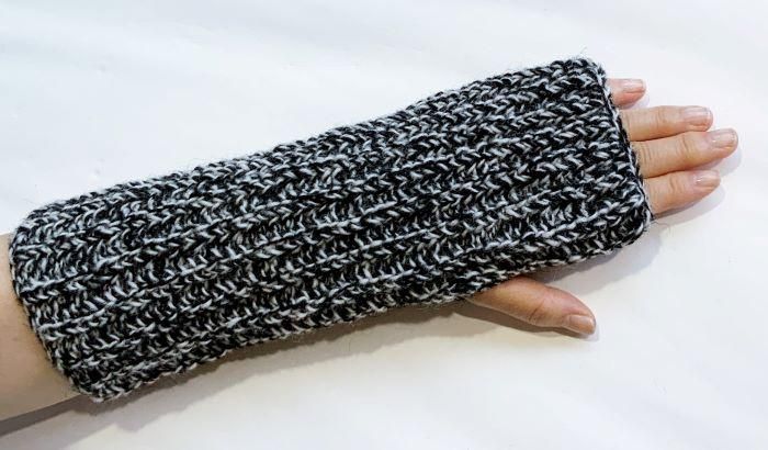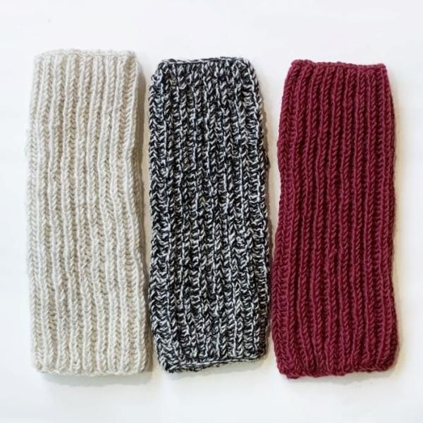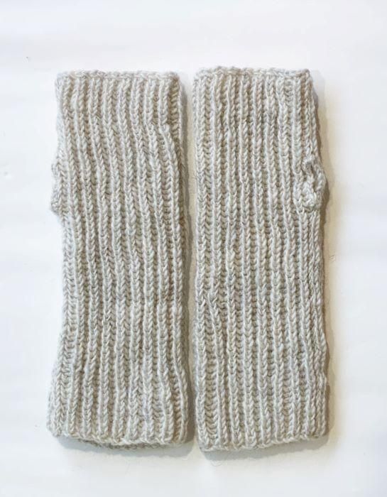 こちらはイギリスゴム編みでふっくらと仕上げたアームウォーマー。