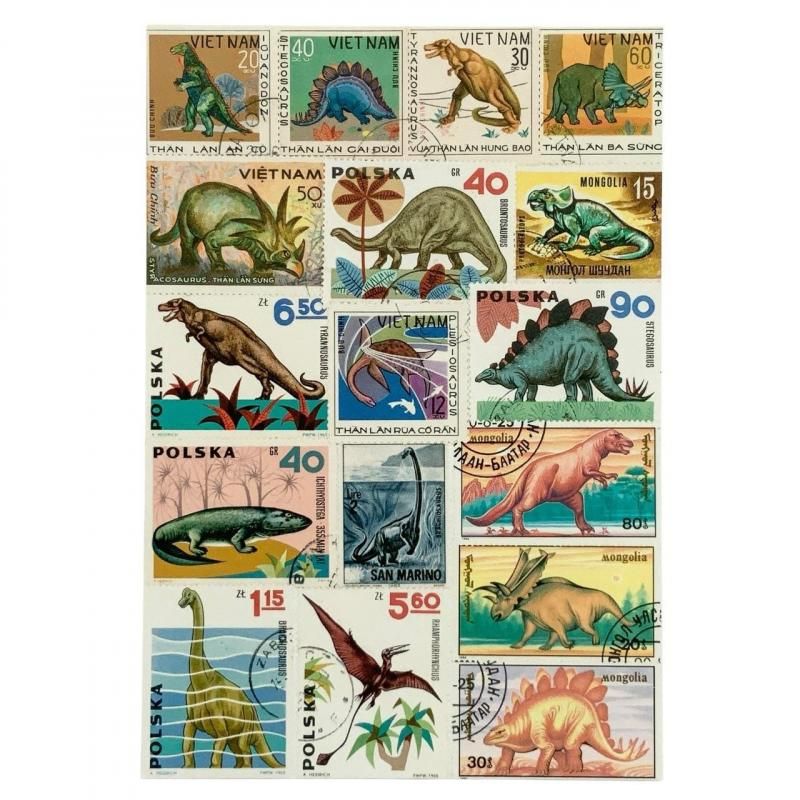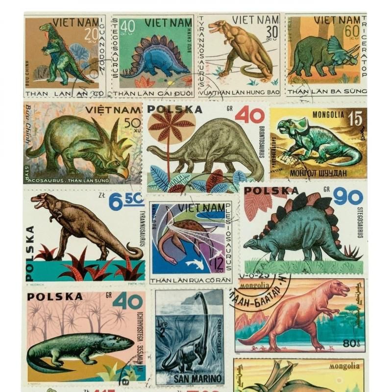 こちらは世界中から恐竜がデザインされた切手が集められています。