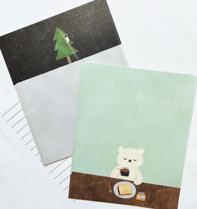 クマのいる風景の便箋が2柄、その日の気分で使い分けできます。