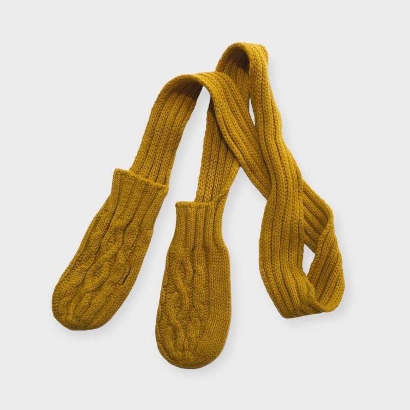 両端にミトンがついた、メリノウール糸で編みたてたミニマフラーです。