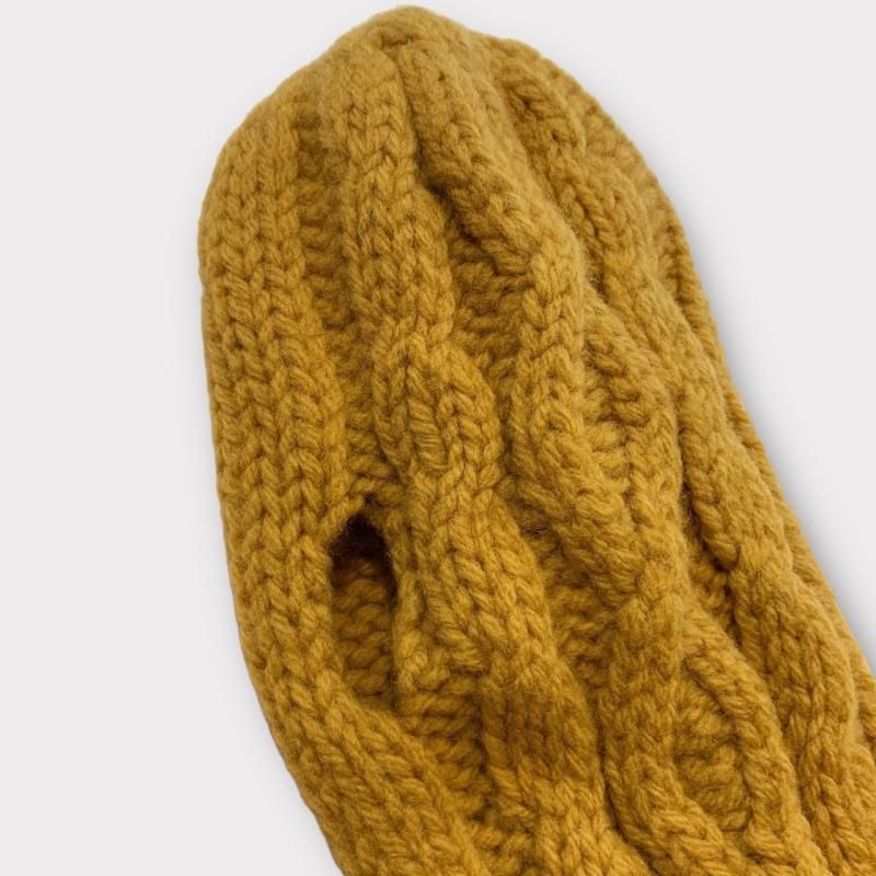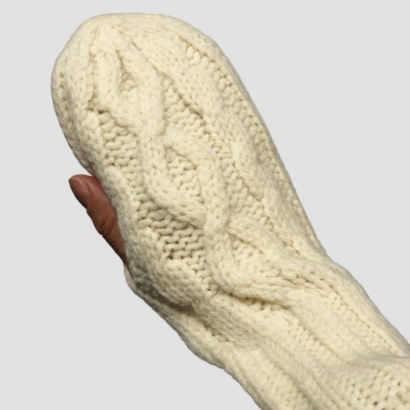 親指部分がなく、スマホ操作がしやすい仕様。ケーブル編みがポイントです。