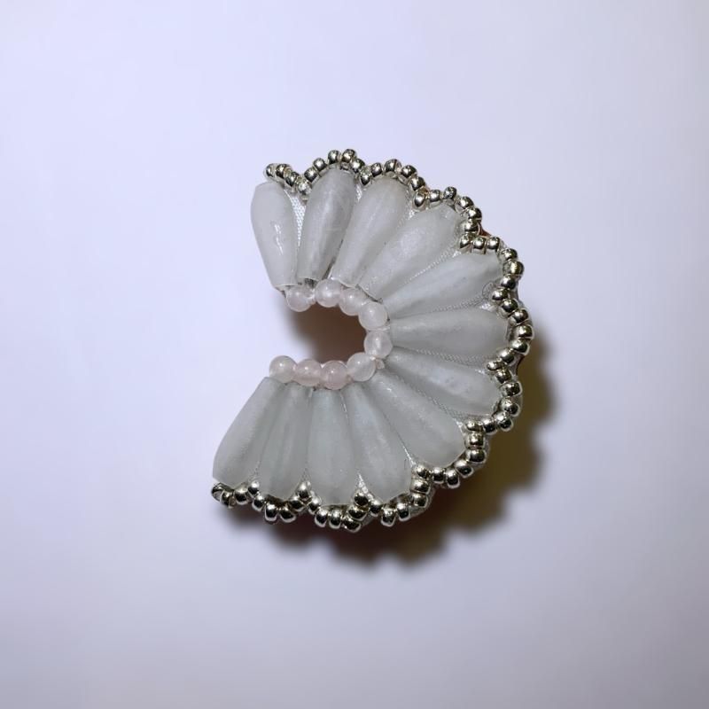 薄いピンクとグレーがかったマットなホワイトビーズに縁のシルバーが映えますね。