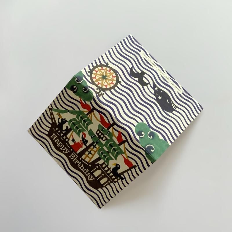 型染めの原画を印刷した、小さな二つ折りのグリーティングカードです。