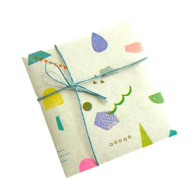 孔版印刷ならではの少しレトロな雰囲気が、味わいのあるわら半紙と純白紙にマッチして可愛いですね。