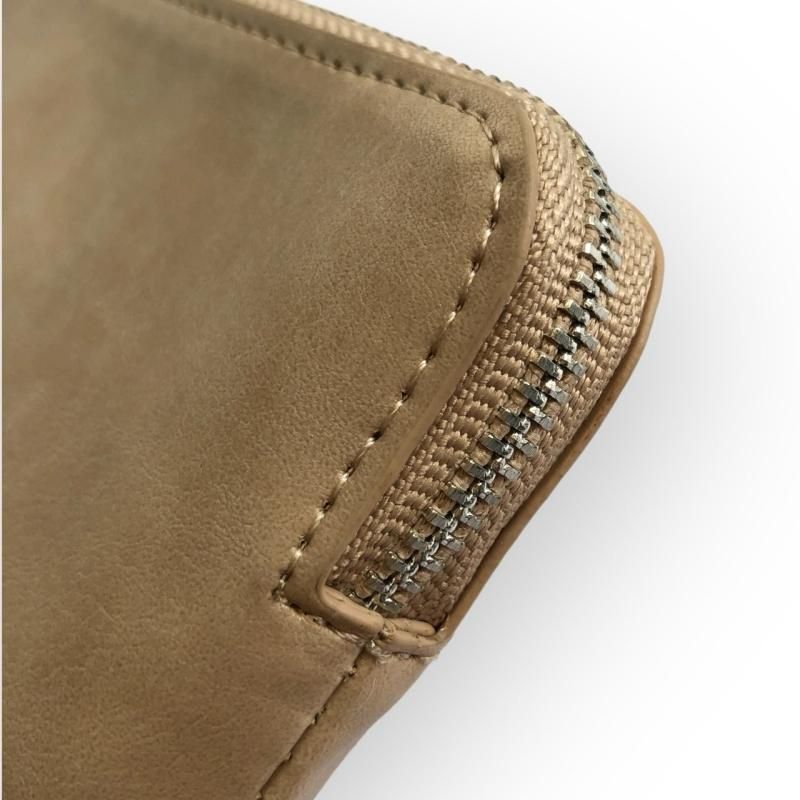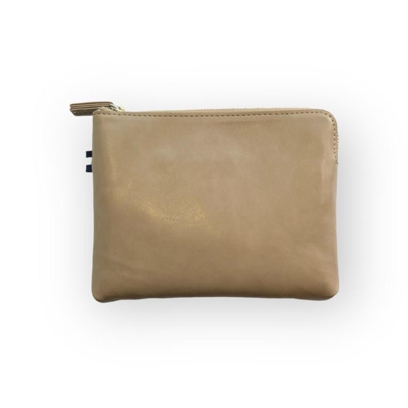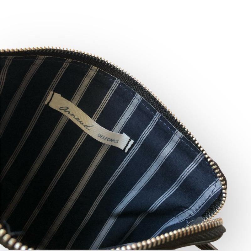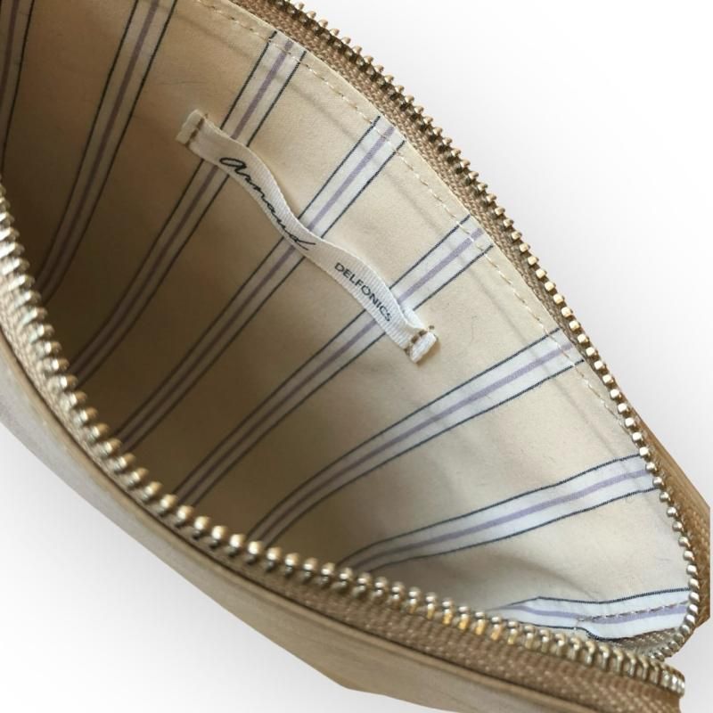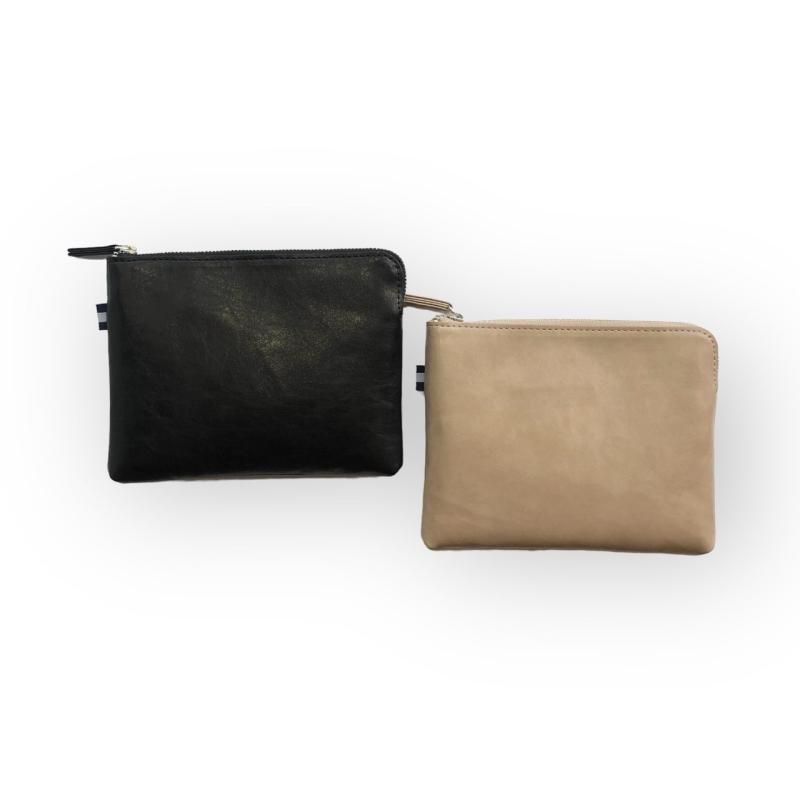 合皮ながら、まるで本革のような高級感がある、艶やかでハリのある素材のポーチです。