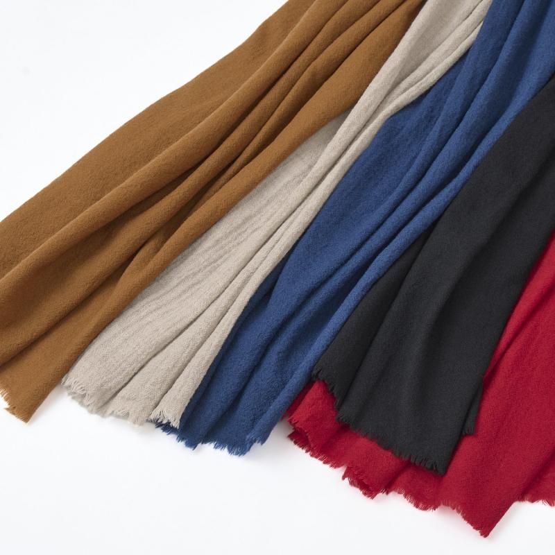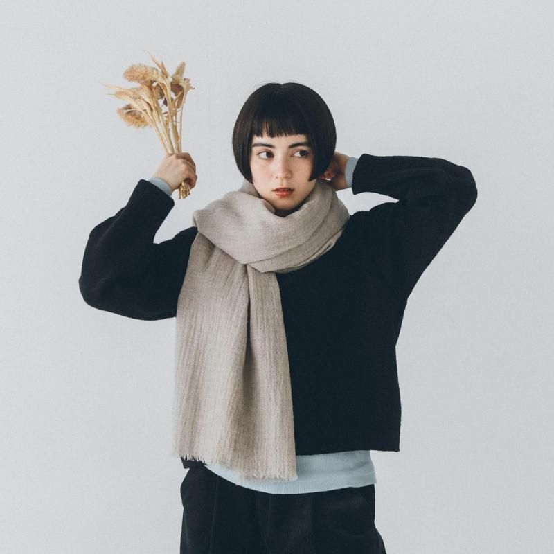 比較的薄く、柔らかな素材で、肩から掛けたり首にグルグル巻いたり、好きなようにアレンジをお楽しみいただけます。