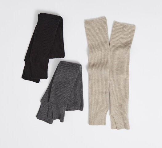 軽くてふくらみのあるウール糸で編みたてたホールガーメントのオーバーニーレッグウォーマーです。