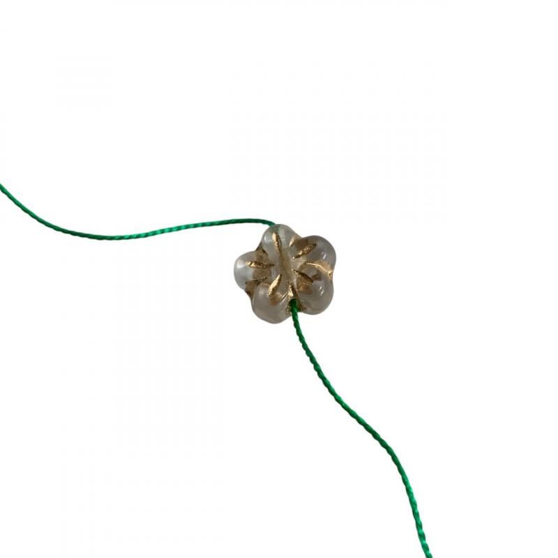 透明な小花にゴールドの線がアクセントになったガラスビーズです。