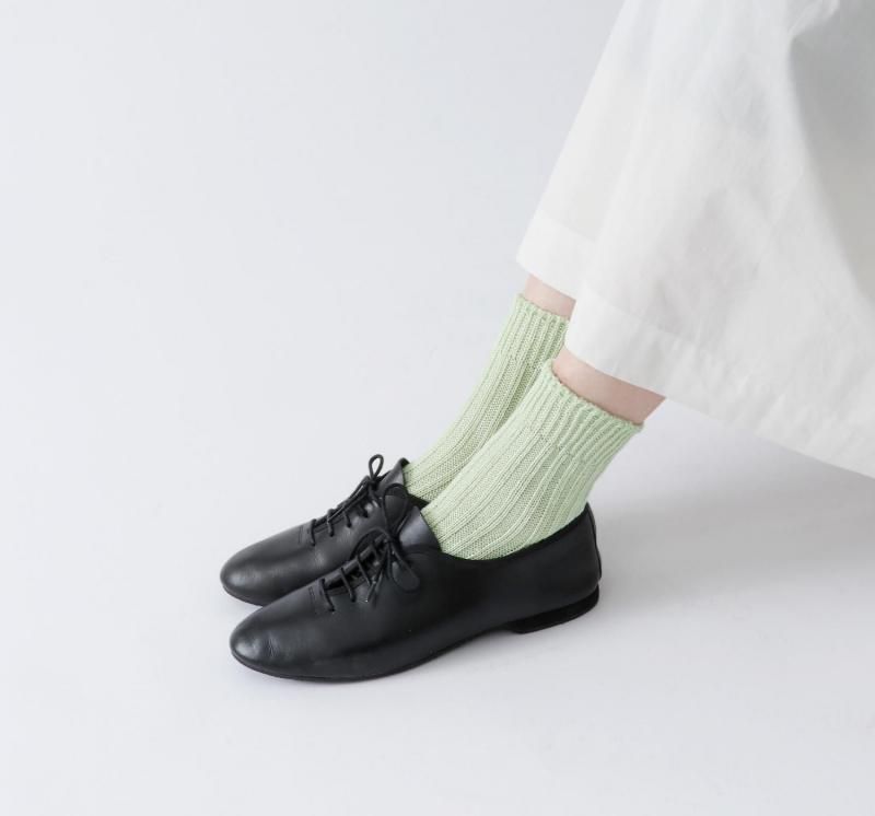 リネン糸でざっくり編み立てた色鮮やかでシンプルなソックスです。