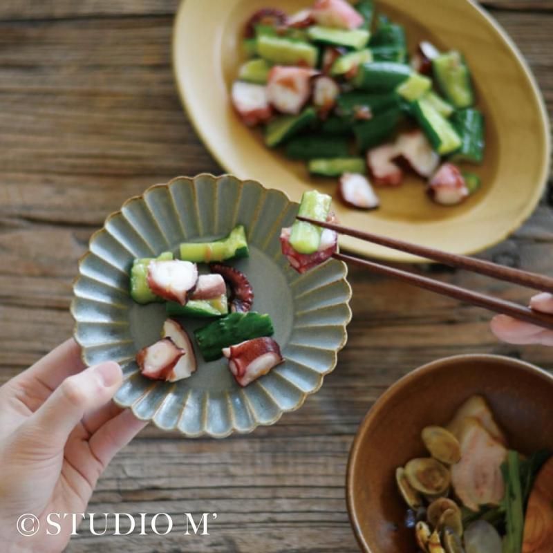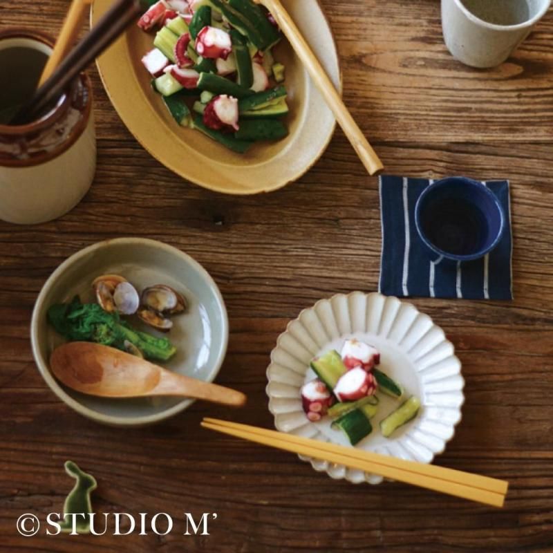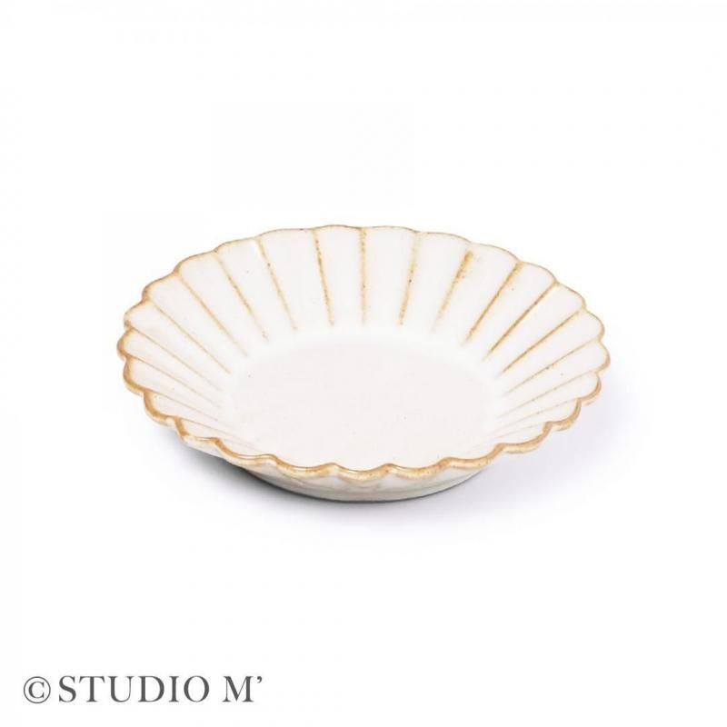素地が透けて見える花びら型のレリーフが印象的で、食卓が華やかになりますね。