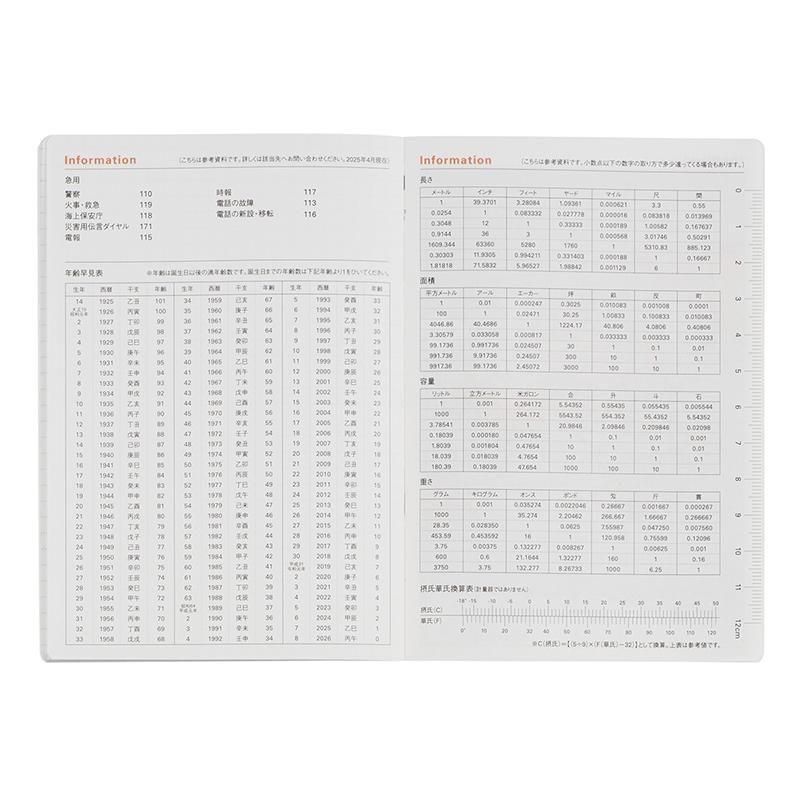 その他、メモ・急用案内・年齢早見表・単位系・目盛線・世界地図・日本地図