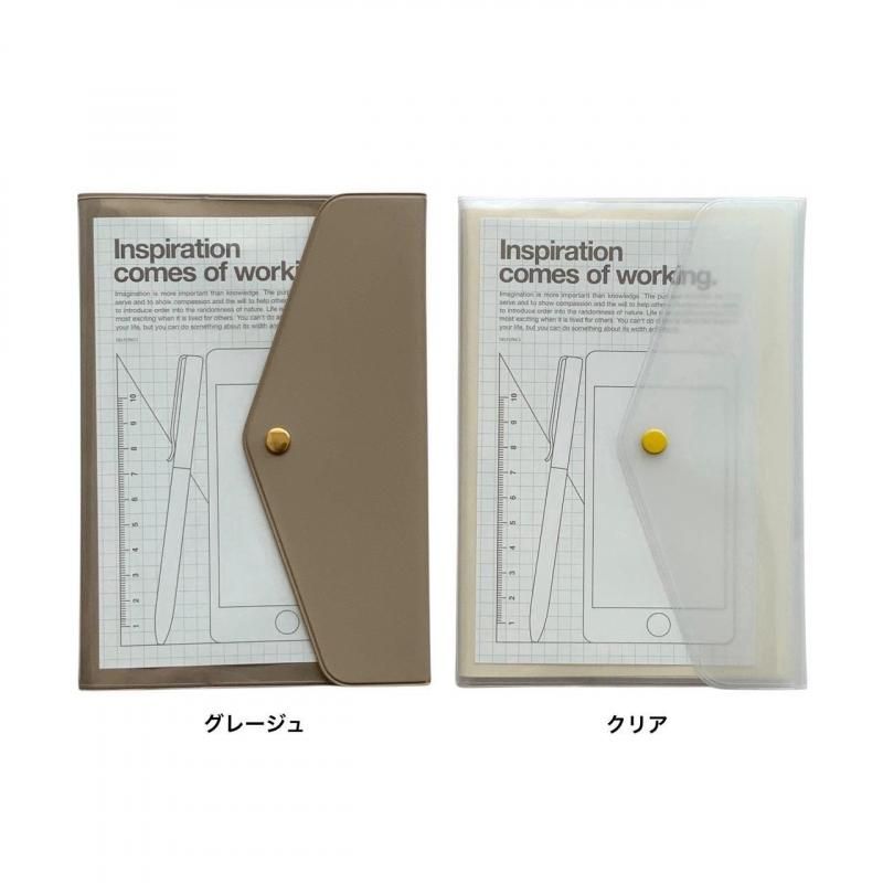 12〜14枚目の画像のように、表紙・裏表紙のクリアポケットにペンや写真・お気に入りのポストカードなどを入れておくのも楽しいですよ。