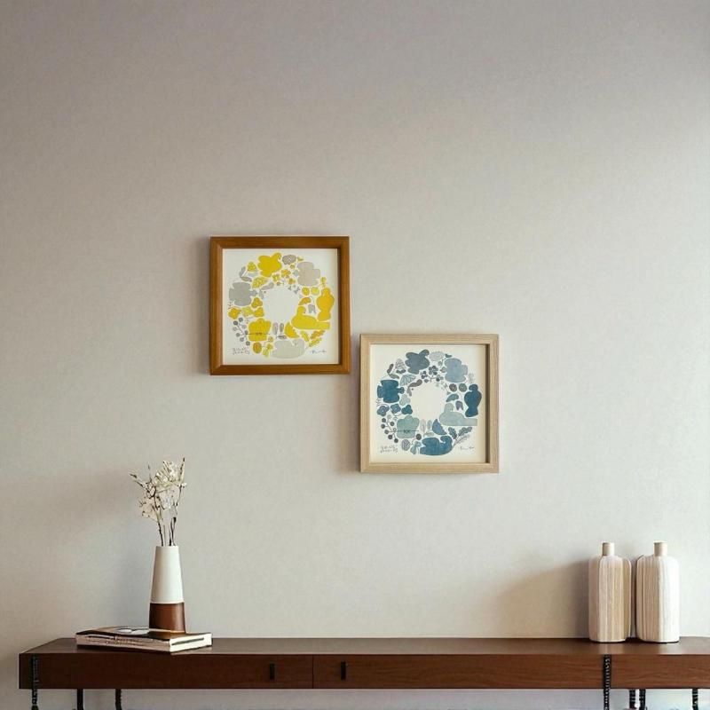 【BIRDS' WORDS】POSTER/WREATHブルー(15×15cm)額(ホワイトアッシュ)入り
