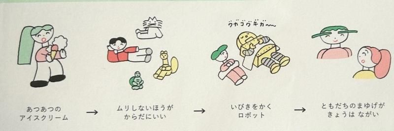 「あつあつのアイスクリーム」→「ムリしないほうがからだにいい」「いびきをかくロボット」……