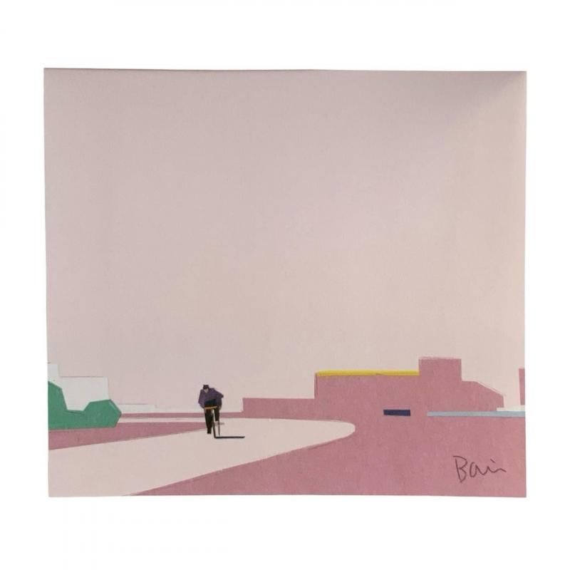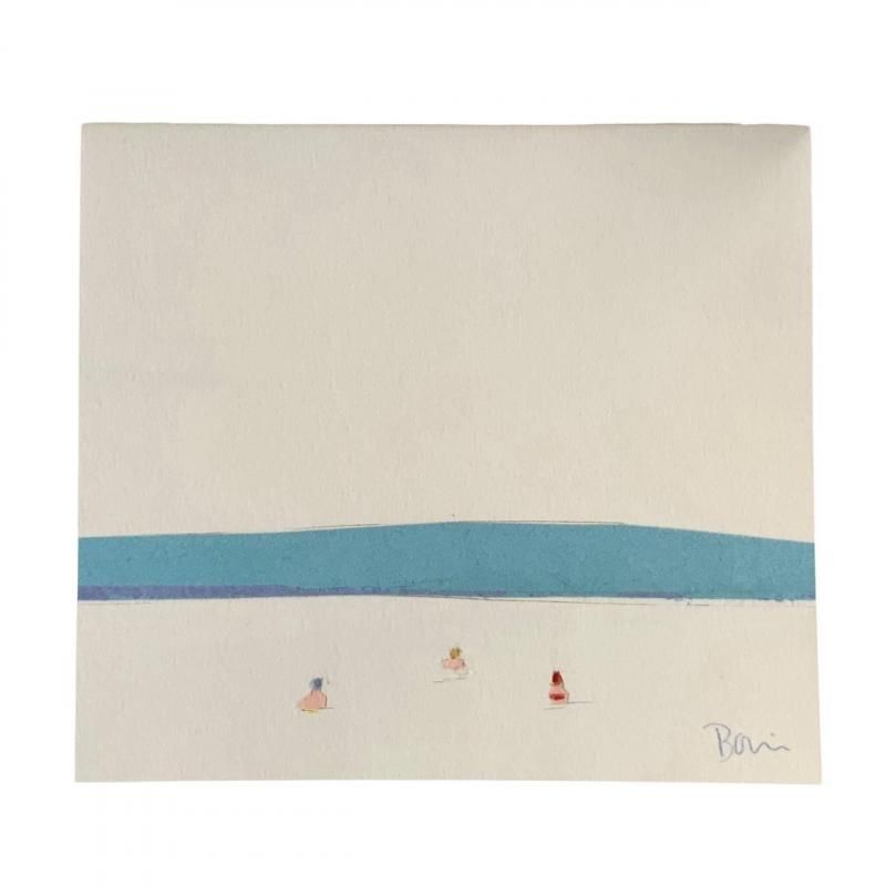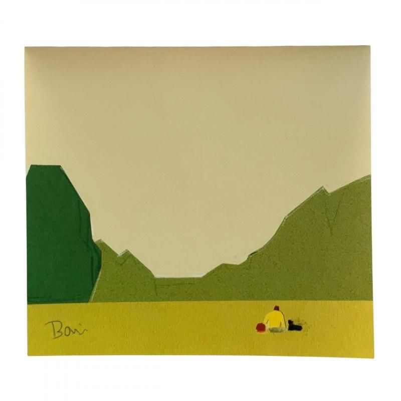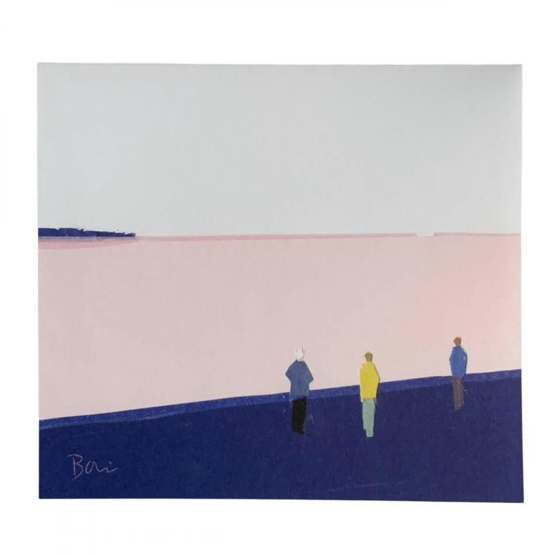 さまざまな色の紙を切り貼りして、空の広がりを感じる景色が描かれたブロックメモです。