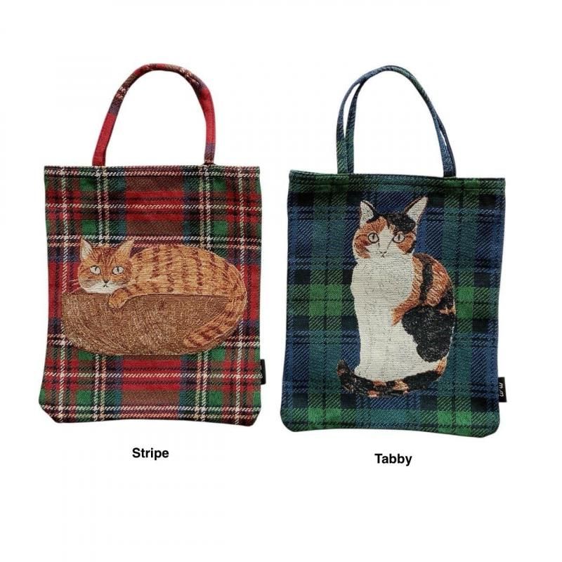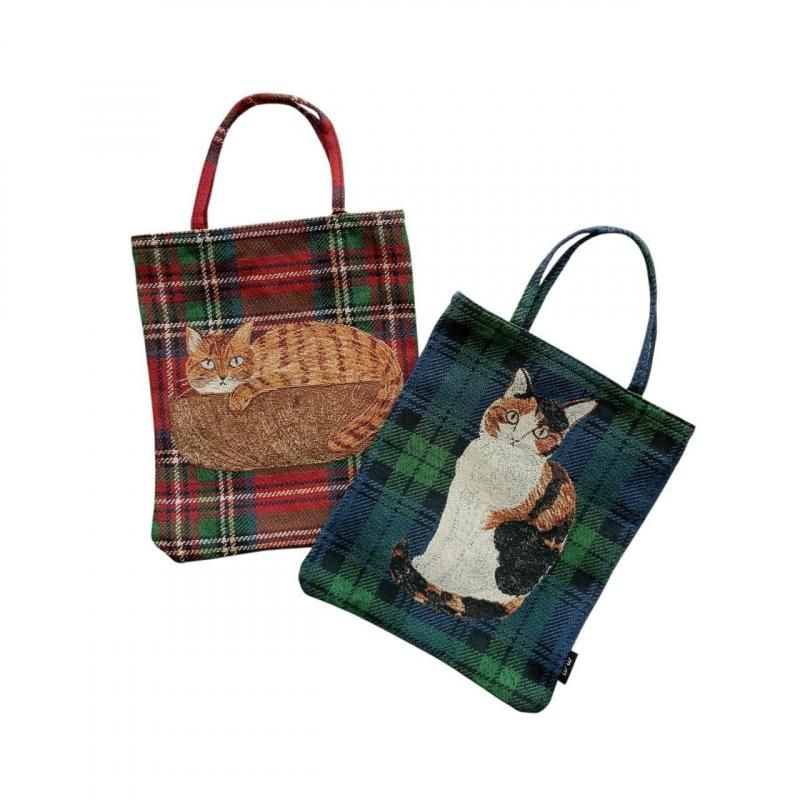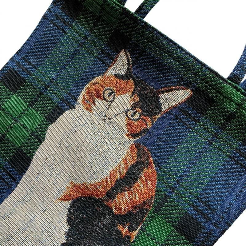 イラストレーター・松尾ミユキさんの描くネコたちがゴブラン織りで表現されたバッグです。