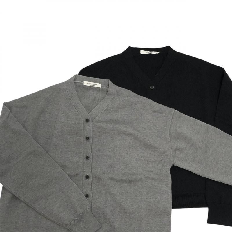 小さめのVネック開きが特徴の、秋口の羽織にぴったりなカーディガンです。