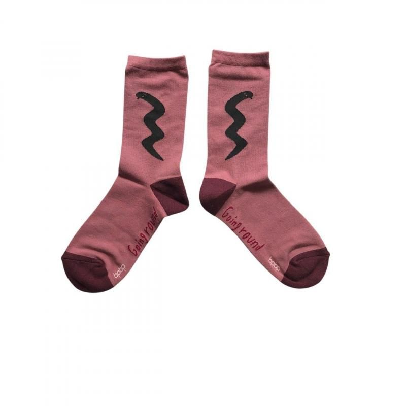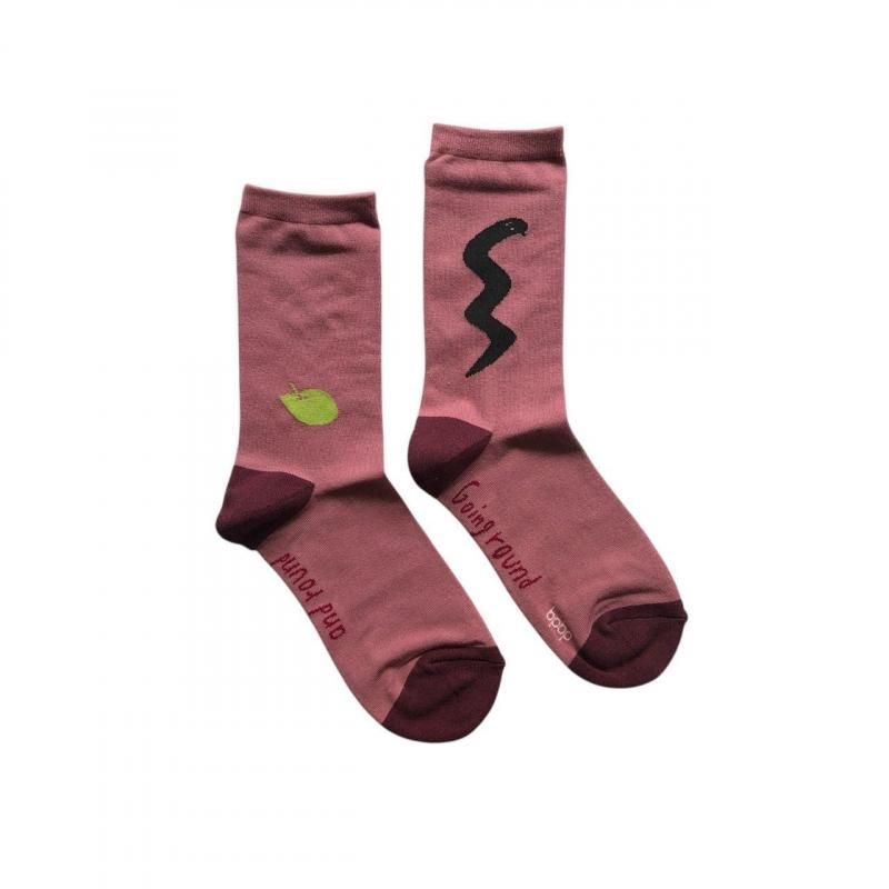こちらは、ヘビとリンゴが描かれた「Going round and round」という柄。