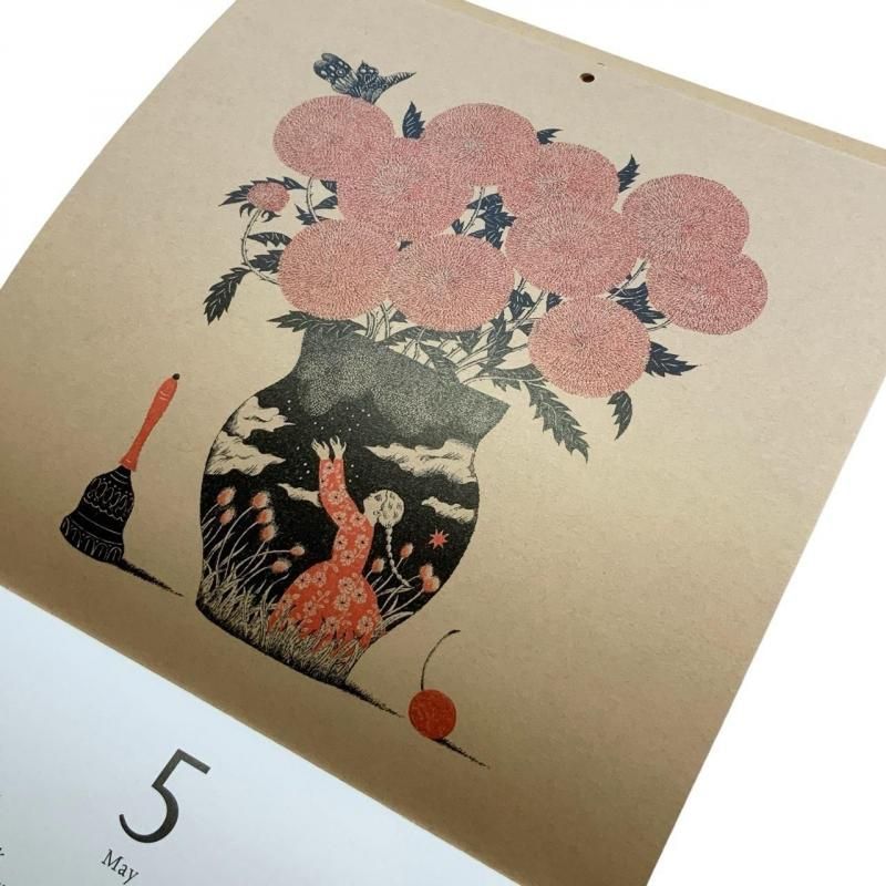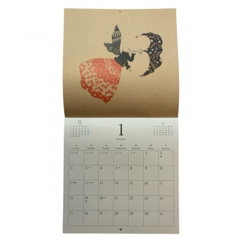 朱と墨だけで描き上げる、独特の世界観が美しい、イラストレーター・杉本さなえさんのカレンダーです。