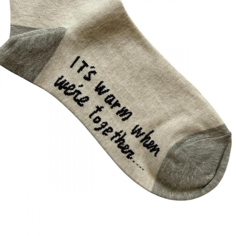 履いた時に外側になる面・内側になる面で異なる柄で、いずれも心が温かくなるようなイラストです。