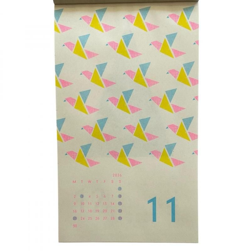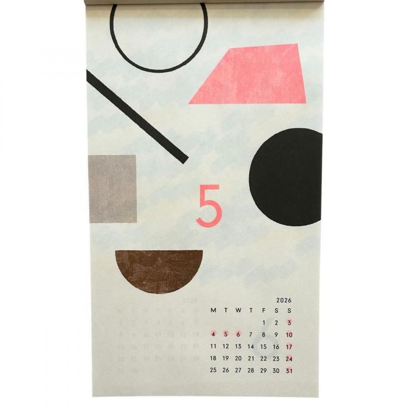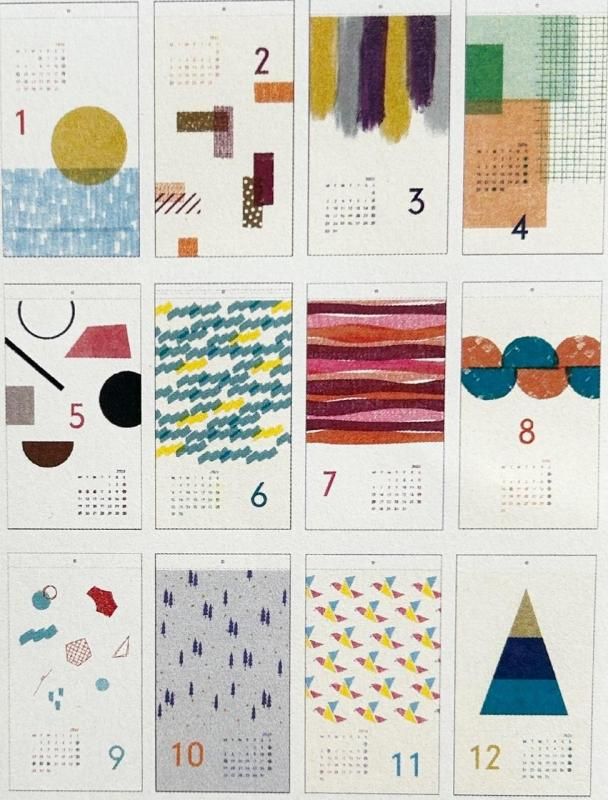 水縞さんらしい、カラフルでリズミカルな模様がプリントされたカレンダーです。