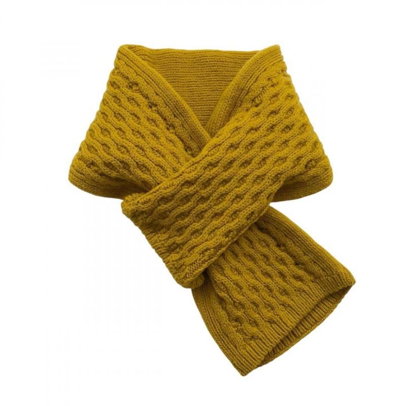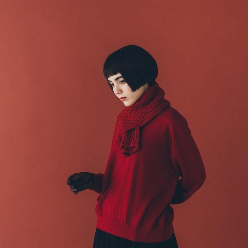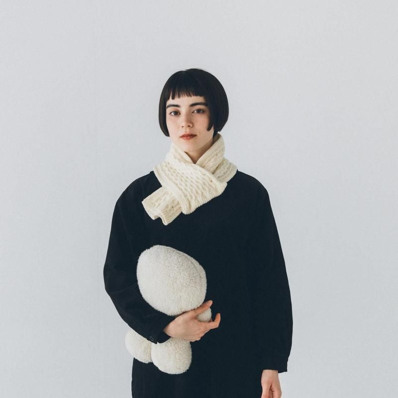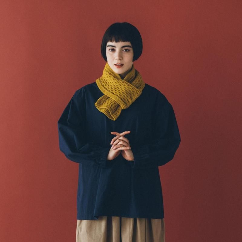 チクチク感の少ないフレンチメリノウール糸を編みたてた、ホールガーメント仕様のミニマフラーです。