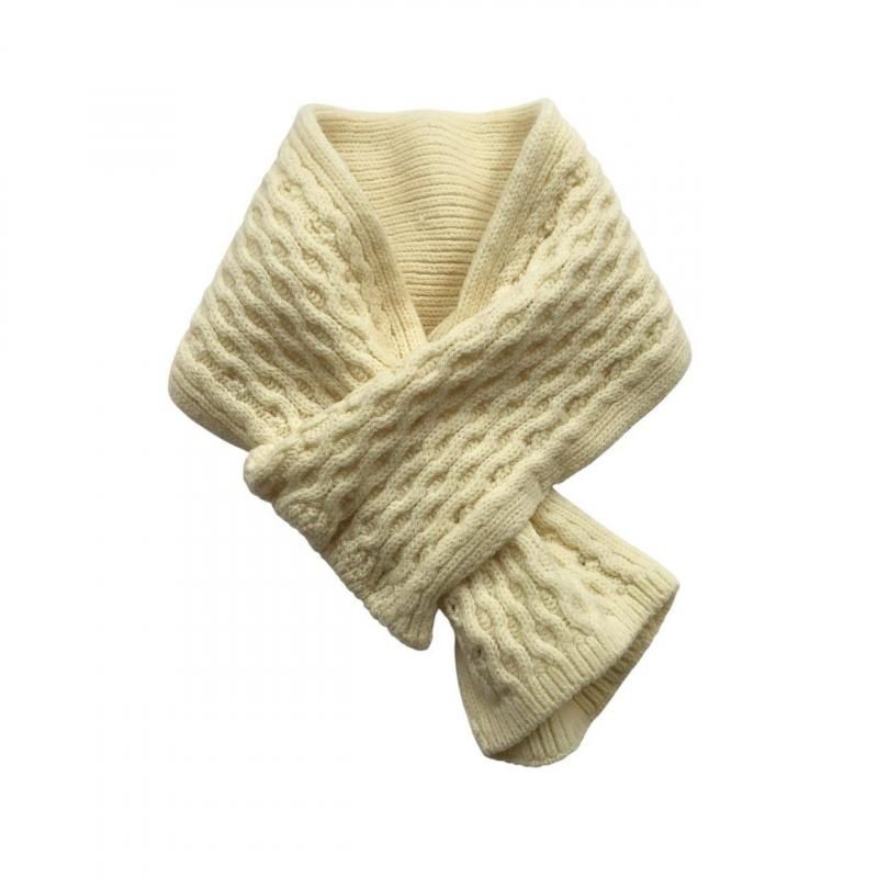 片方の穴に先を通して使用できるデザインで、首元がすっきりとまとまります。