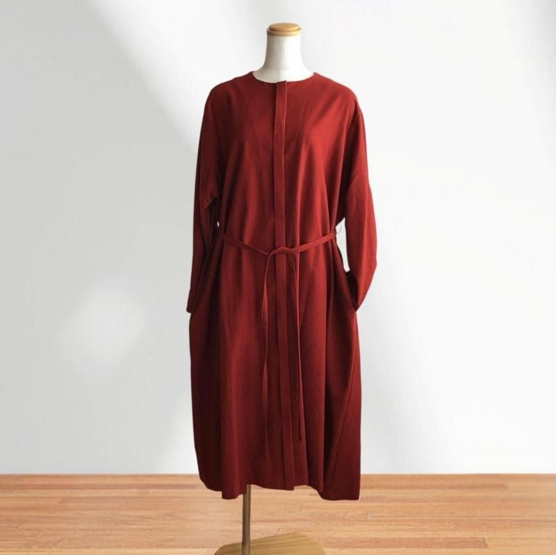 2020年A/Wコレクションで登場したシャツワンピースをリデザイン、新たにシボ感のあるコットンウールで再登場です。