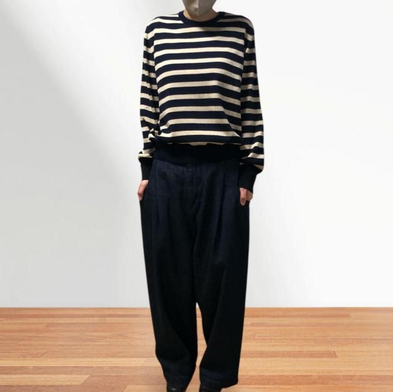 少しゆったりめのシルエットで、メンズのSもしくはレディースのLサイズ程度のサイズ感。