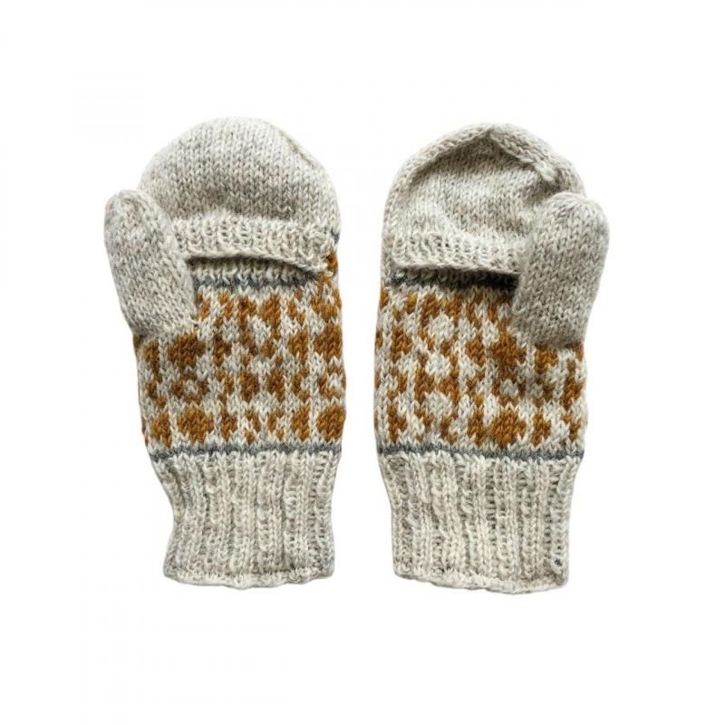 こちらは、月の満ち欠けを表現した編み込み模様のミトン。