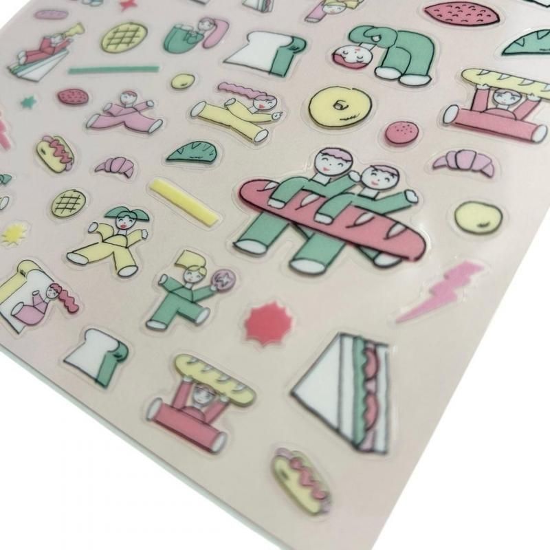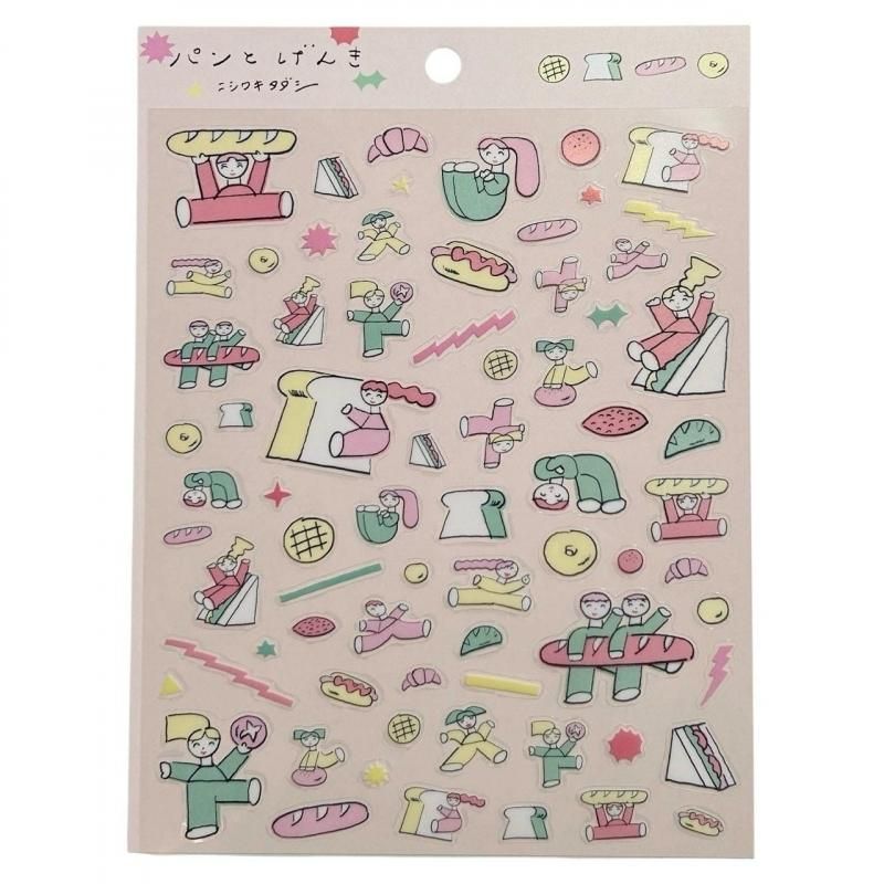 そんなニシワキさんの描くいろんなパンと、元気いっぱいの人たちがいっぱいのシールのシートです。