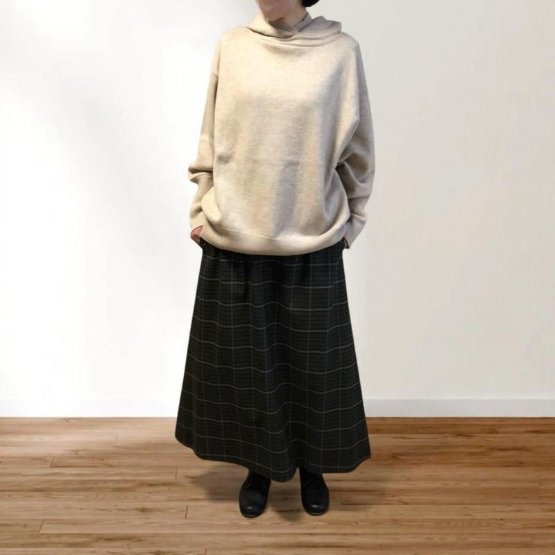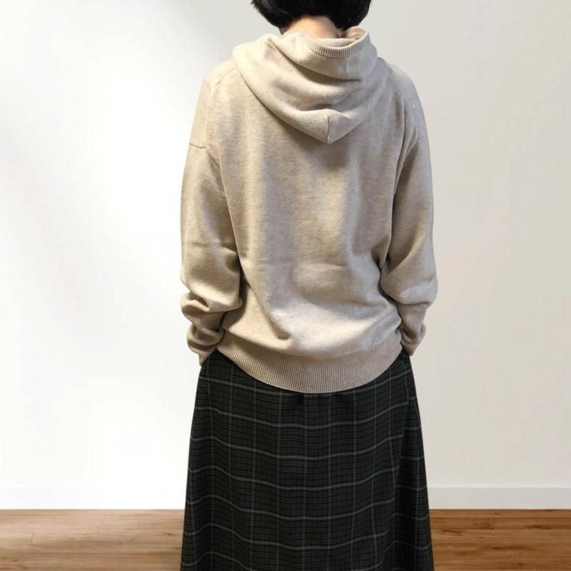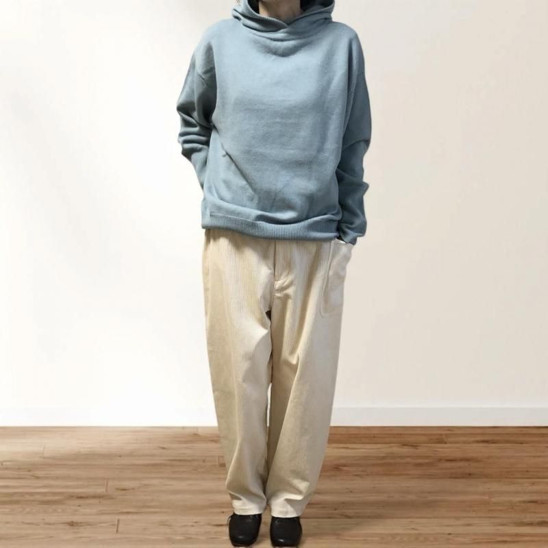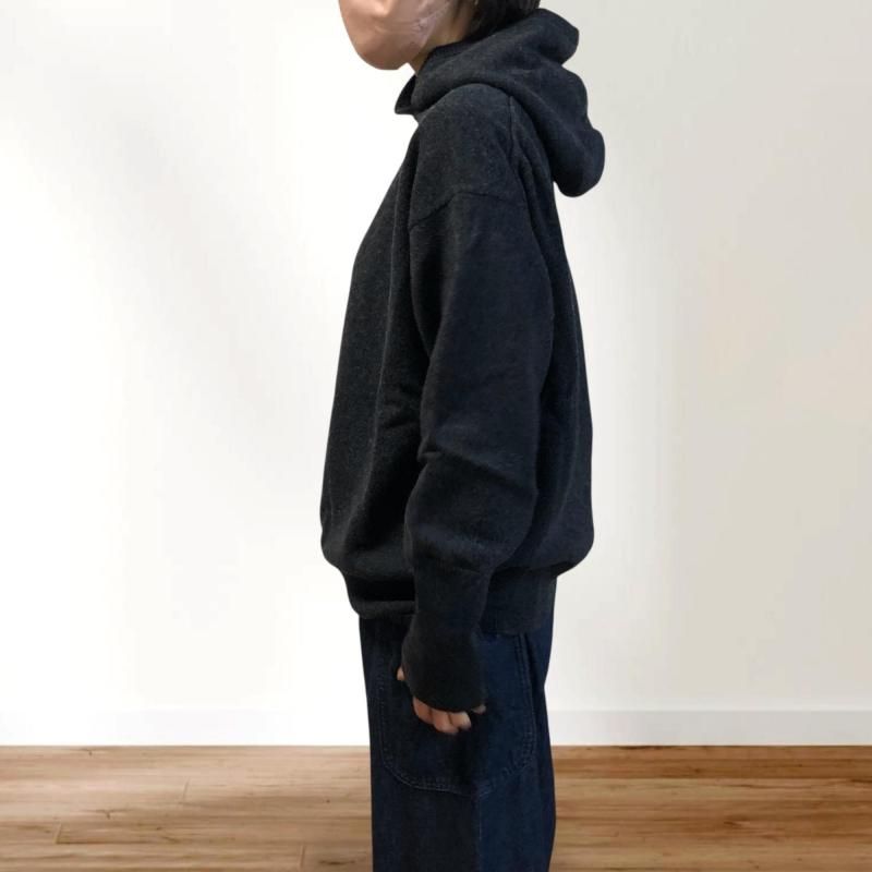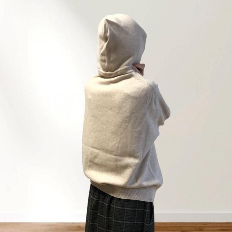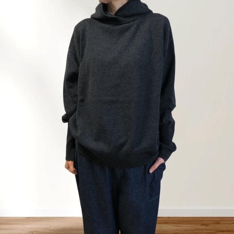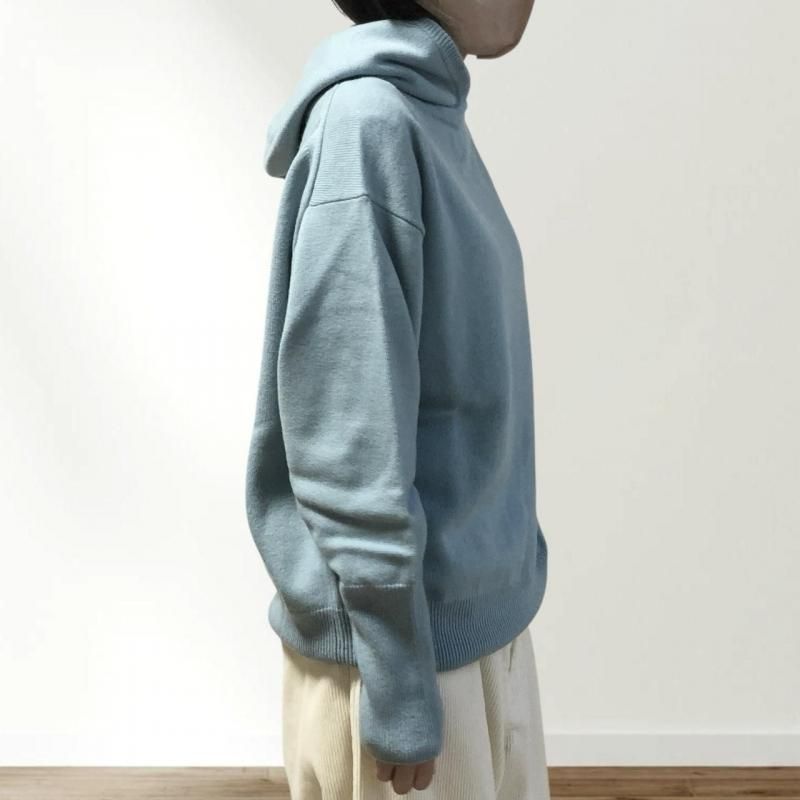 一見シンプルなデザインながら、袖のリブの長さやフードの立ち方、全体のシルエットなど、細かいところまでこだわったアトリエナルセらしいニットです。