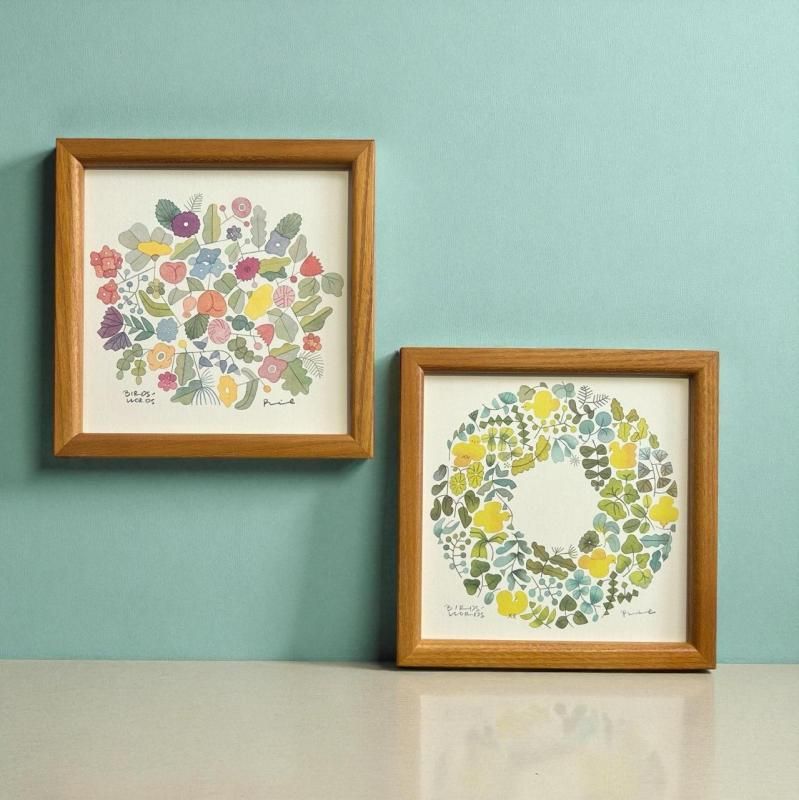 【BIRDS' WORDS】POSTER/FOREST WREATH(15×15cm)額(木製)入り