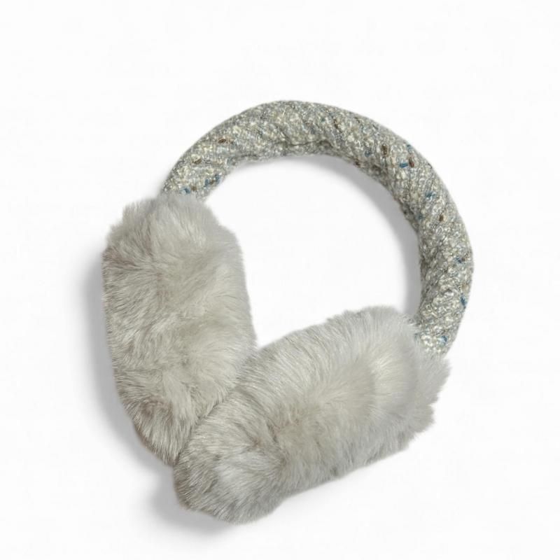 【coeur】ツイード&エコファーイヤマフ /ホワイト&ライトグレー