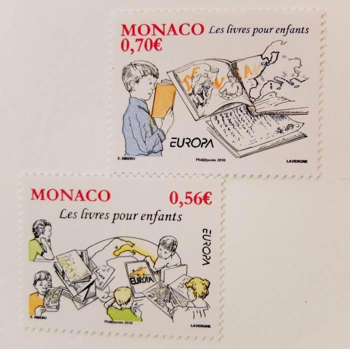 モナコの切手は、子供たちが呼んでいる本の内容までわかりそうな、繊細なタッチで描かれています。お勉強してる子もいれば、マンガ読んでる子も!